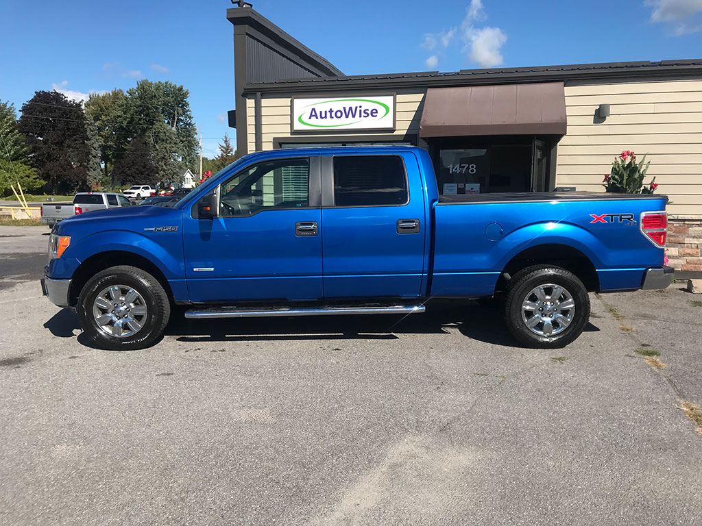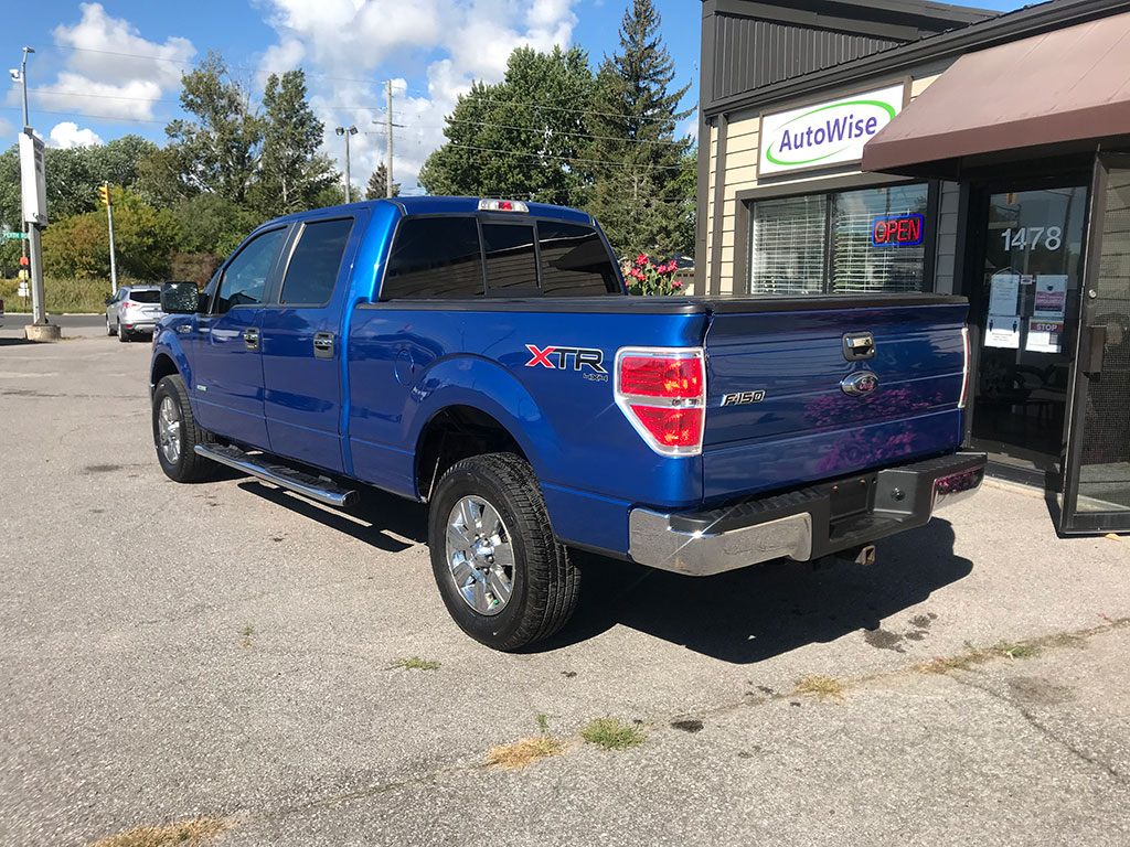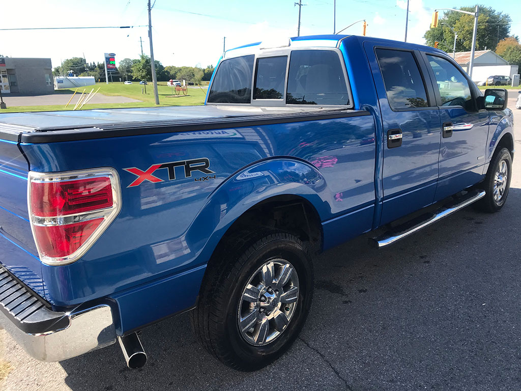 2011 Ford F-150 XLT 4×4 with 3.5 litre EcoBoost engine, automatic transmission, keyless entry, back-up camera, Bluetooth with steering wheel controls, air conditioning, tilt steering, cruise control, power windows, power locks, power mirrors, trailer brake controller, CD player, hard-folding tonneau cover, only 145,500 km and a clean CarFax!