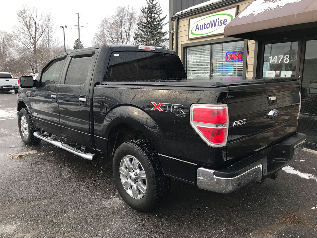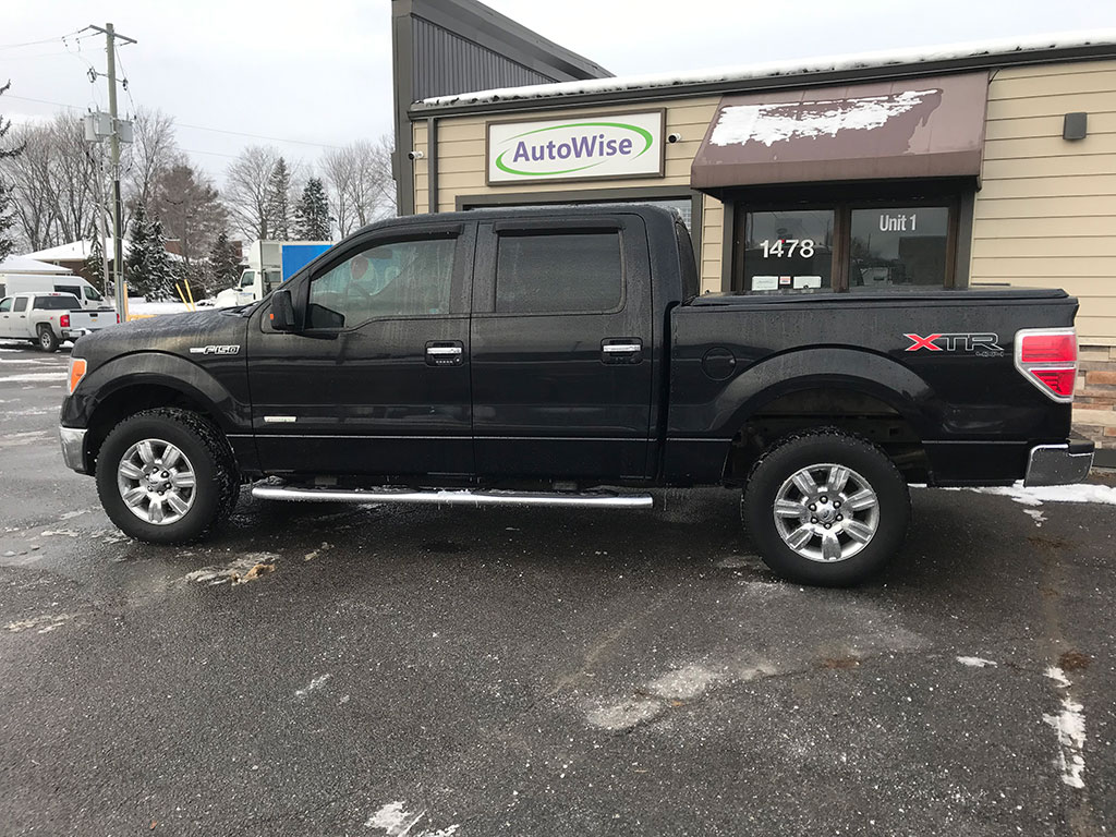 2011 Ford F-150 XLT 4×4 with 3.5 litre EcoBoost engine, automatic transmission, keyless entry, Bluetooth with steering wheel controls, power adjustable pedals, air conditioning, tilt steering, cruise control, power windows, power locks, power heated mirrors, trailer brake controller, CD player, tonneau cover, spray-on bed liner, only 135,900 km and a clean CarFax!