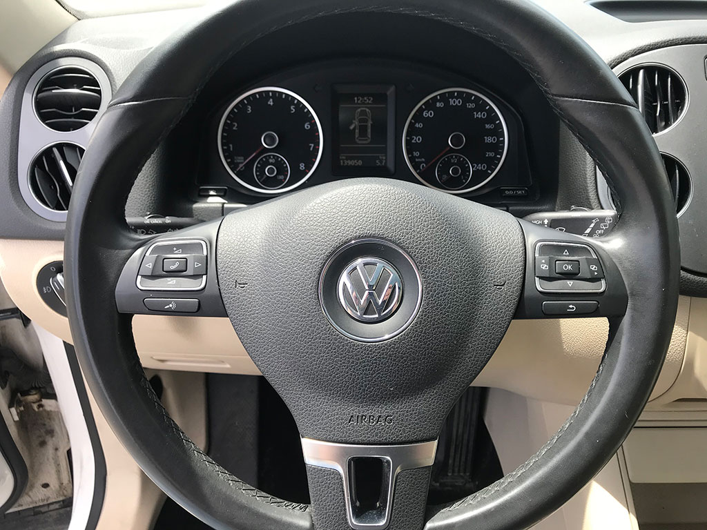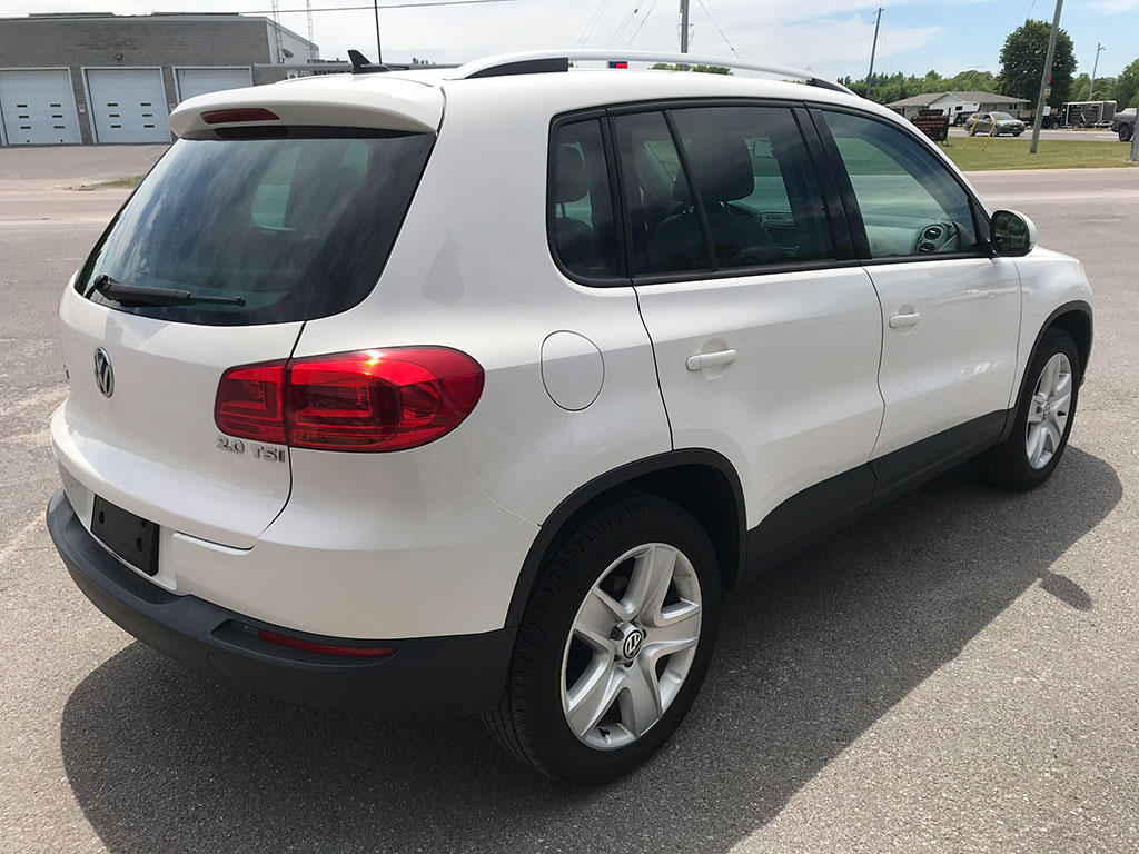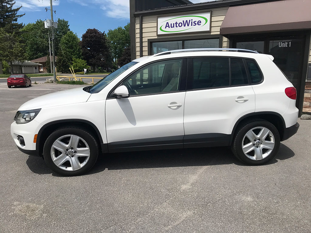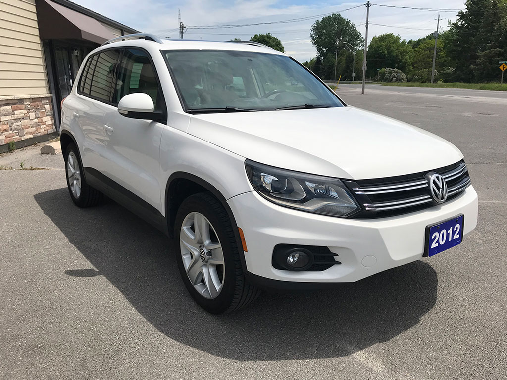 2012 Volkswagen Tiguan 2.0 TSI with 4Motion AWD, automatic transmission, keyless entry, tinted windows, leather seats, panoramic moonroof with power sunshade, Bluetooth, heated seats, air conditioning, tilt wheel, cruise control, power heated mirrors, power windows, power locks, alloy wheels, only 139,041 km and a clean CarFax!