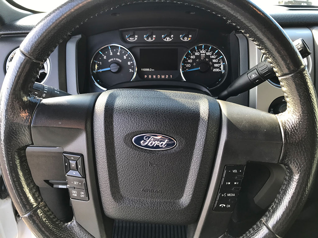 2014 Ford F-150 XLT 4×4 with 5.0 litre V8 engine, automatic transmission, keyless entry, Bluetooth with steering wheel controls, air conditioning, tilt steering, cruise control, power windows, power locks, power mirrors, aftermarket trailer brake controller, CD player, spray-on bed liner, tonneau cover, only 113,000 km and a clean CarFax!