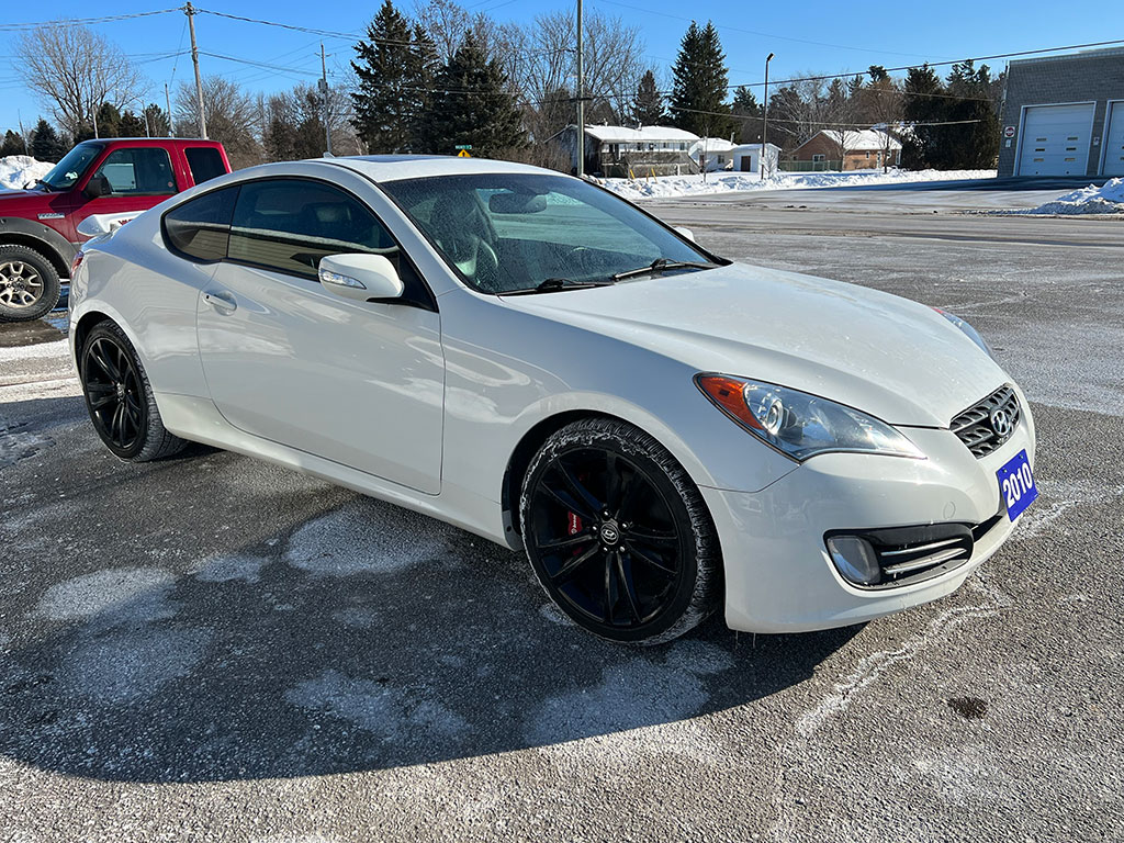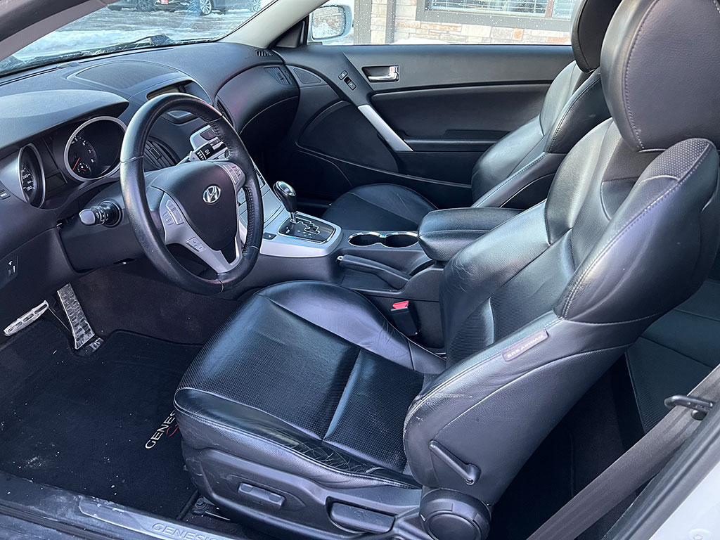 • 2010 Hyundai Genesis 3.8 GT Track RWD Coupe with automatic transmission, keyless entry, push-button start, leather, heated seats, Bluetooth with steering wheel controls, Brembo brakes, 19″ alloy wheels with brand new winter tires, moon-roof, air conditioning, tilt steering, cruise control, power windows, power locks, power mirrors, CD player, only 138,600 km and a clean CarFax!