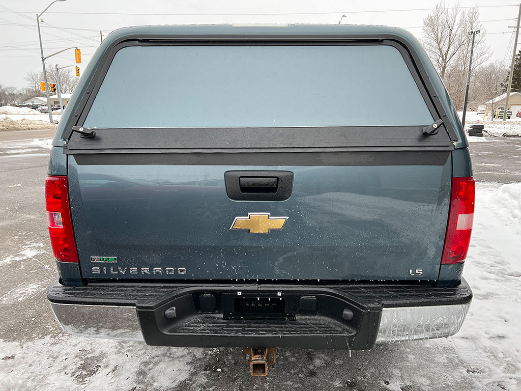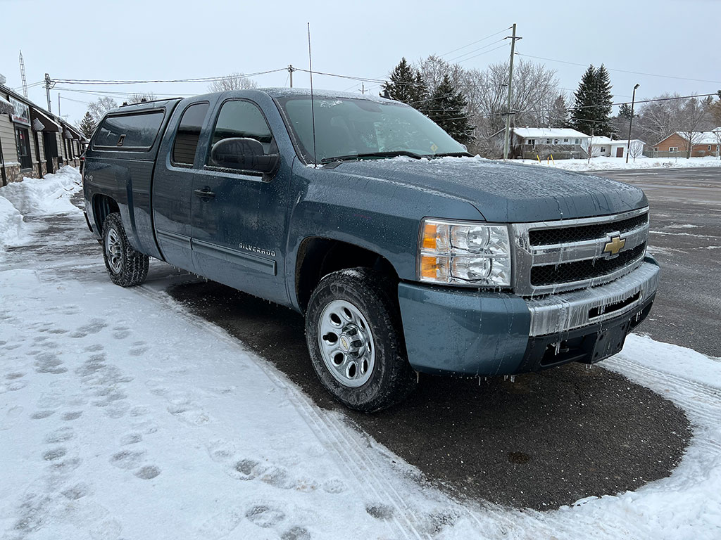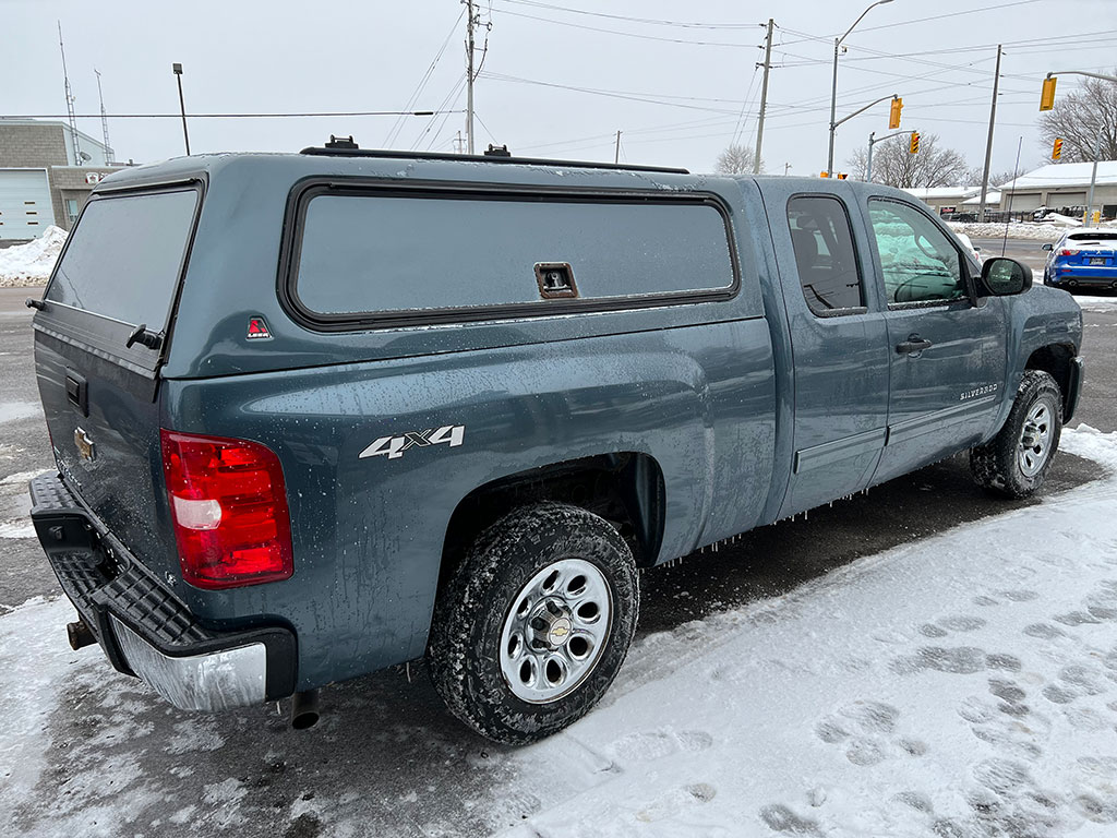 • 2011 Chevrolet Silverado 1500 LS 4×4 with 4.8 litre engine, automatic transmission, keyless entry, remote start, air conditioning, tilt steering, cruise control, power windows, power locks, power mirrors, CD player, bedliner, bed cap, only 97,450 km and a clean CarFax!