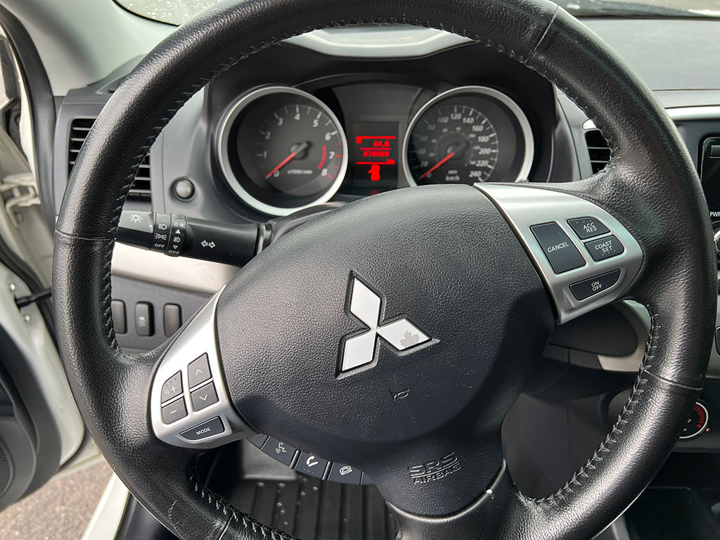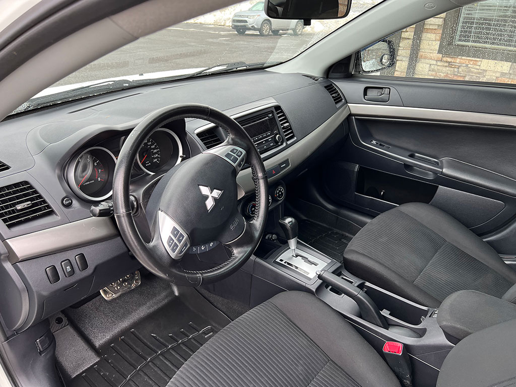 2014 Mitsubishi Lancer with automatic transmission, tinted windows, keyless entry, Bluetooth, heated seats, moon-roof, tilt steering, cruise control, power windows, power locks, power mirrors, air conditioning, CD player, alloy wheels, only 70,000 km and a clean CarFax!