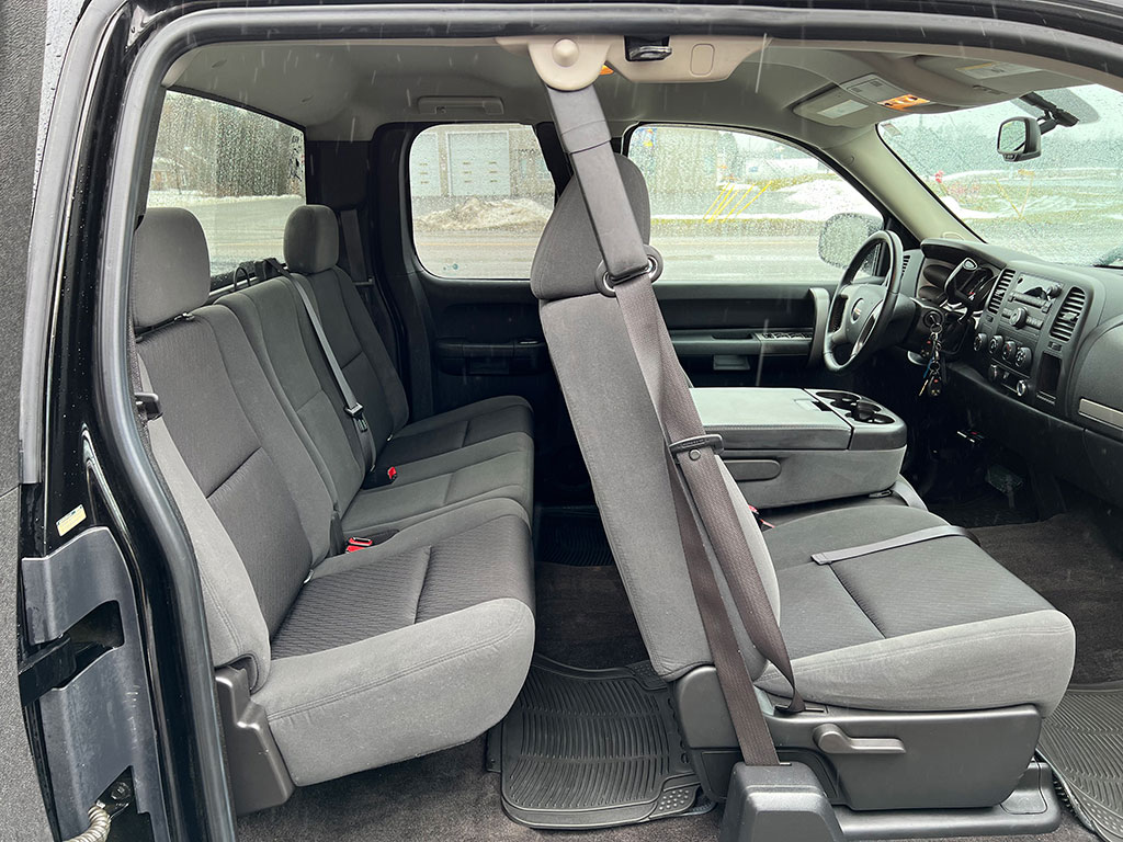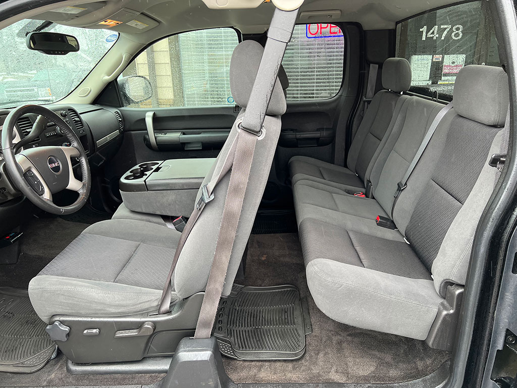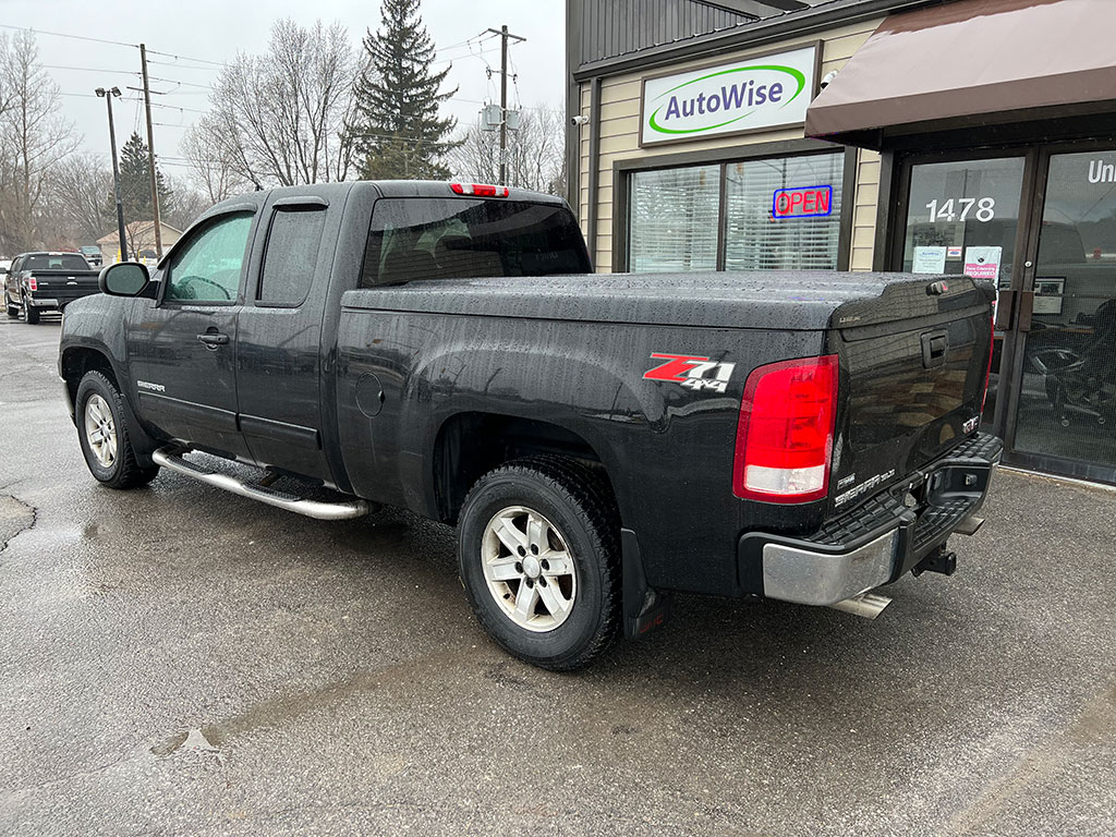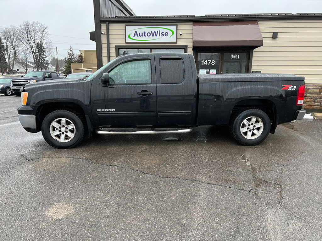 2009 GMC Sierra 1500 SLE 4×4 with 5.3 litre engine, automatic transmission, keyless entry, remote start, air conditioning, tilt steering, cruise control, power windows, power locks, power heated mirrors, CD player, Leer tonneau cover, only 121,600 km and a clean CarFax!