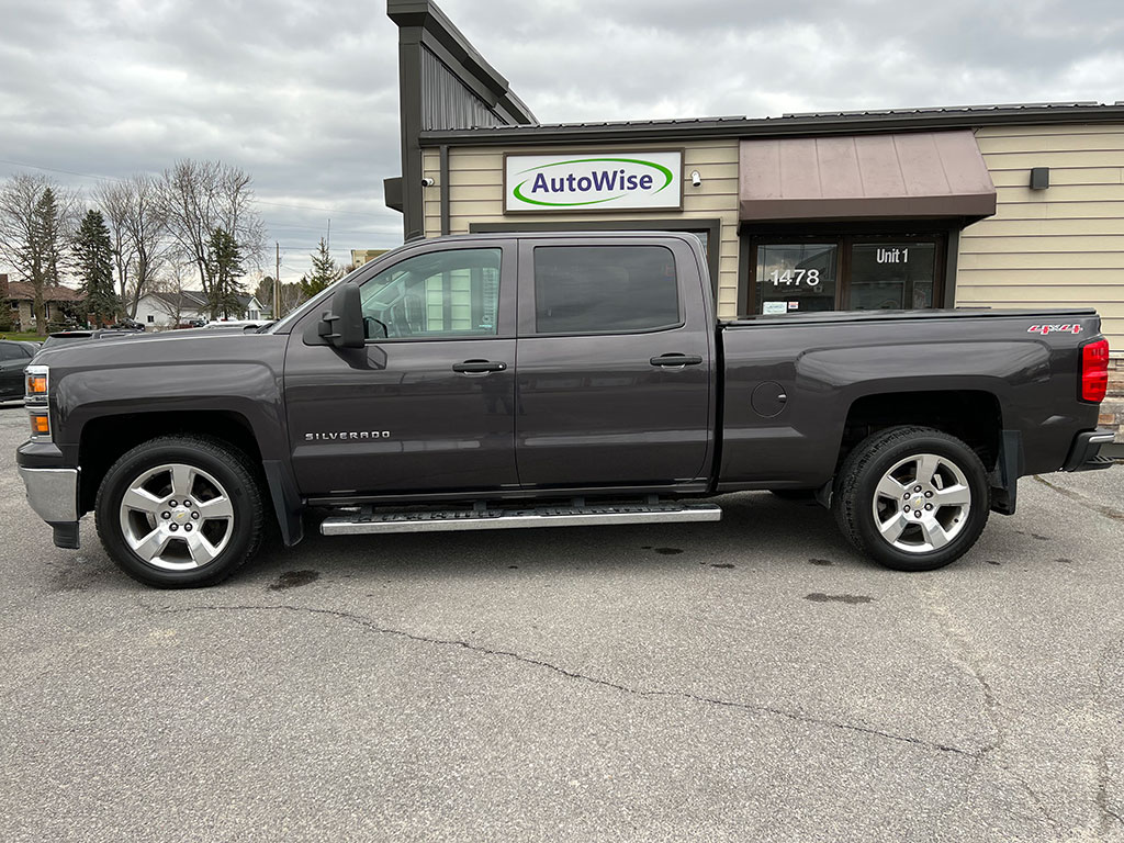 2014 Chevrolet Silverado 1500 LT 4×4 with 5.3 litre engine, automatic transmission, tinted windows, keyless entry, remote start, Bluetooth, automatic climate controls, power drivers seat, heated seats, air conditioning, tilt steering, cruise control, power windows, power locks, power mirrors, Line-X spray-on bedliner, only 104,000 km and a clean CarFax!