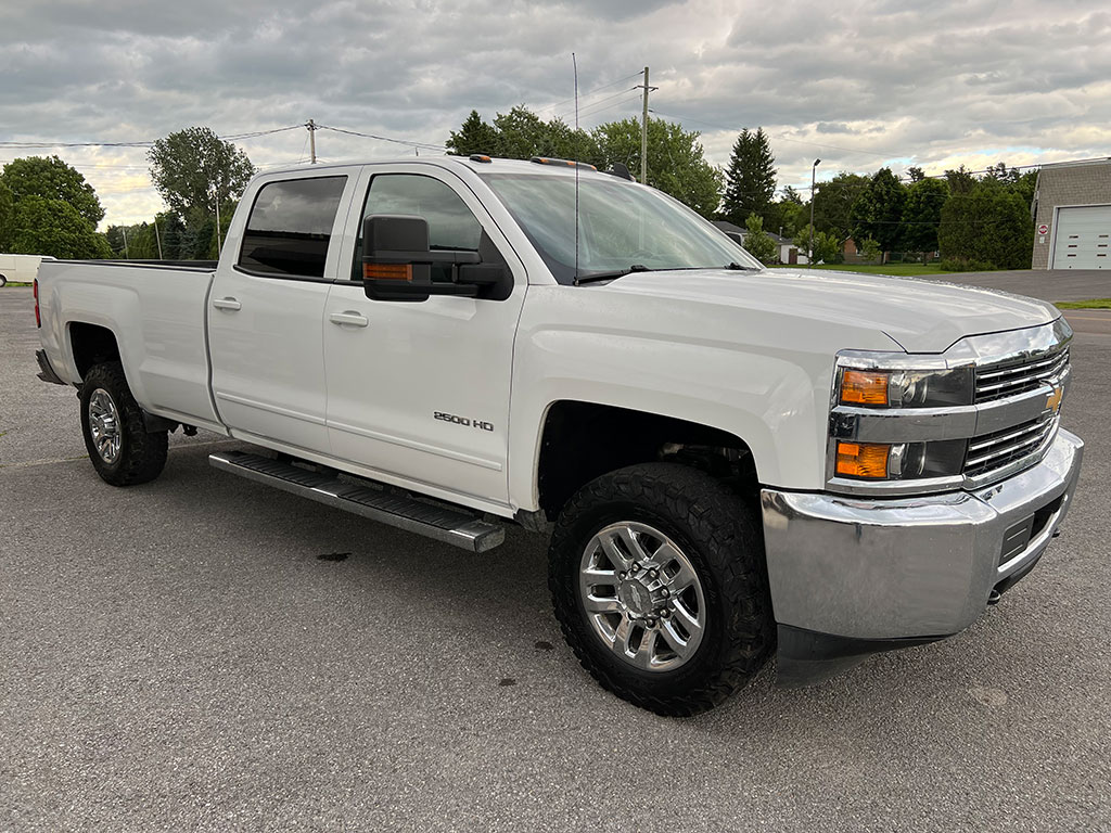 2015 Chevrolet Silverado 2500 HD LT 4×4 with 6.0 litre engine, automatic transmission, keyless entry, air conditioning, tilt steering, cruise control, power windows, power locks, power mirrors, spray-on bedliner, 145,200 km and a clean CarFax!