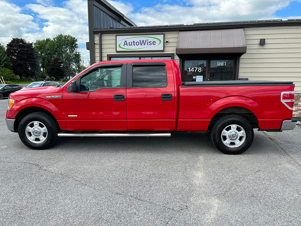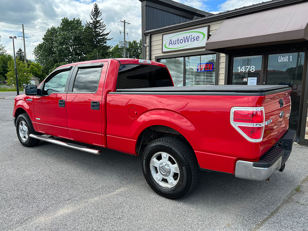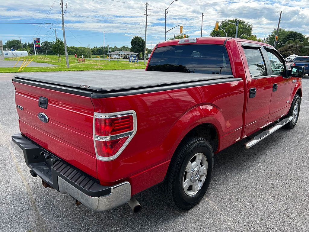 2011 Ford F-150 XLT 2WD with 3.5 litre EcoBoost engine, automatic transmission, tinted windows, keyless entry, air conditioning, tilt steering, cruise control, power windows, power locks, power mirrors, tonneau cover, bed liner and 167,900 km.