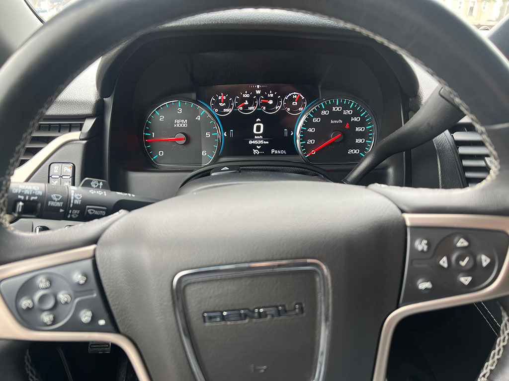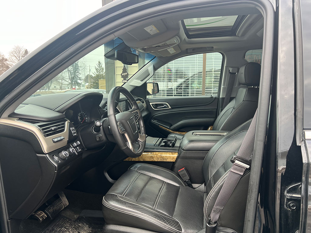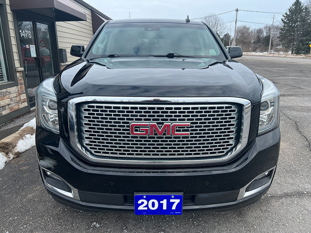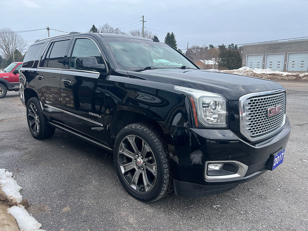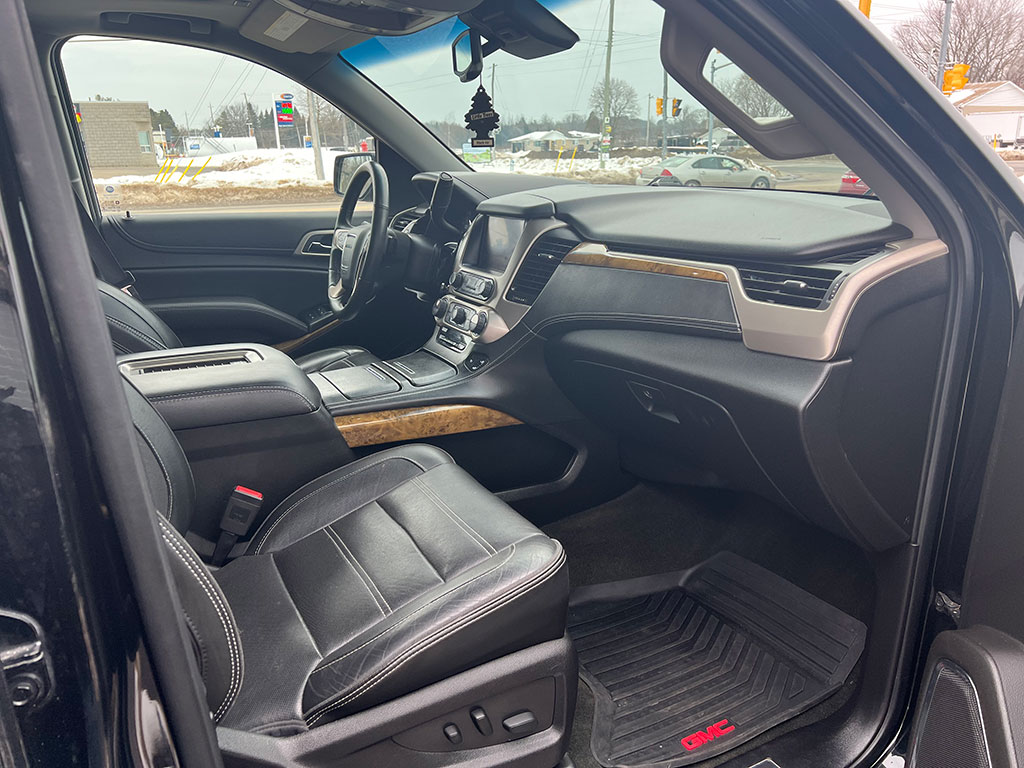- 2017 GMC Yukon Denali 4×4 with 6.2 litre engine, automatic transmission, remote start, keyless entry, heads-up display, leather, Bluetooth, navigation, Bose sound, automatic climate controls, power heated and cooled front seats with driver side memory, middle row heated seats, rear seat entertainment, power tilt and telescopic steering, power heated and folding mirrors, power running boards, power rear hatch, tinted windows, tow package, only 84,500 km and a clean CarFax!