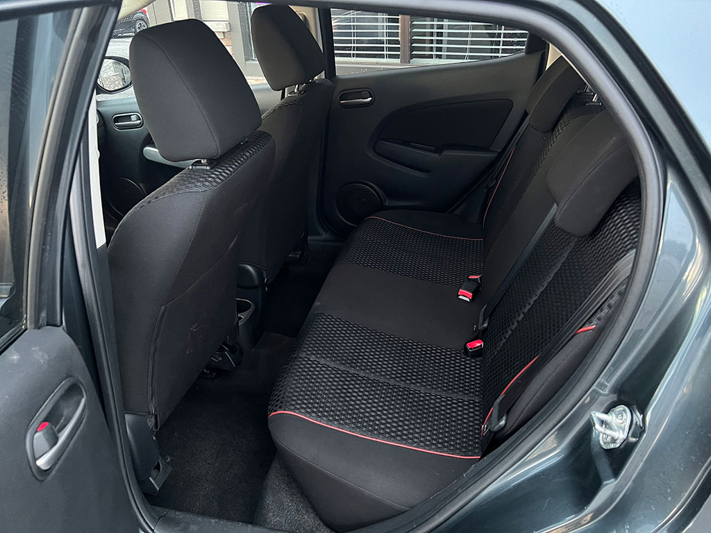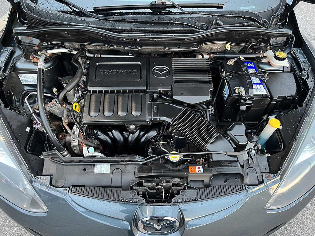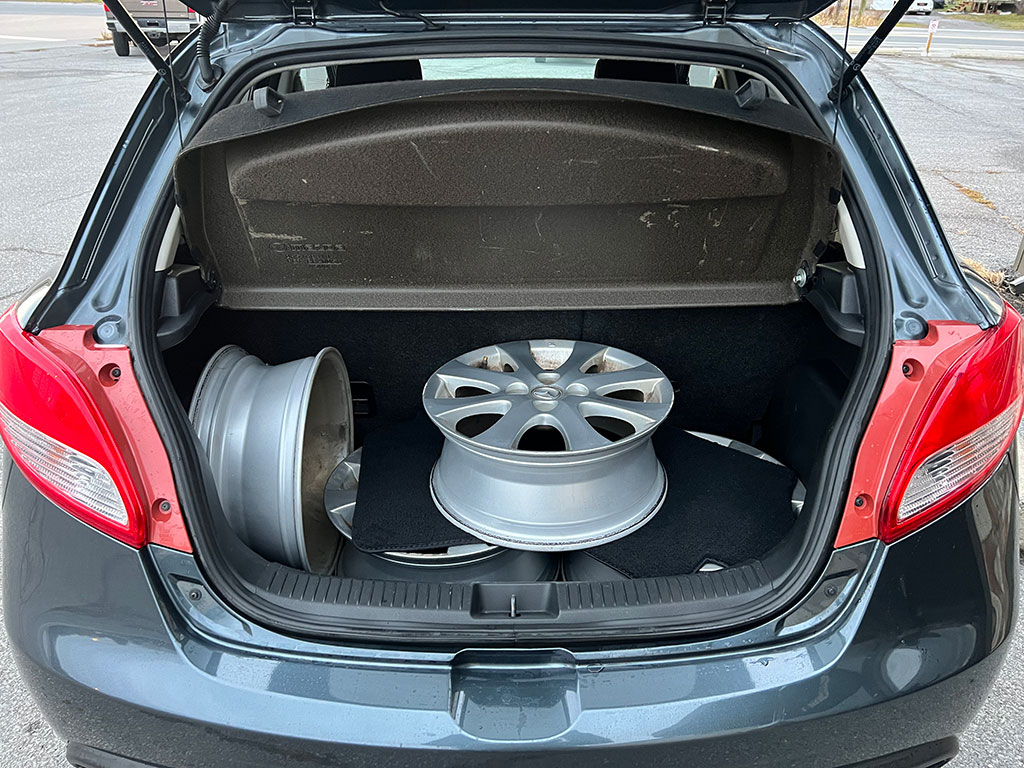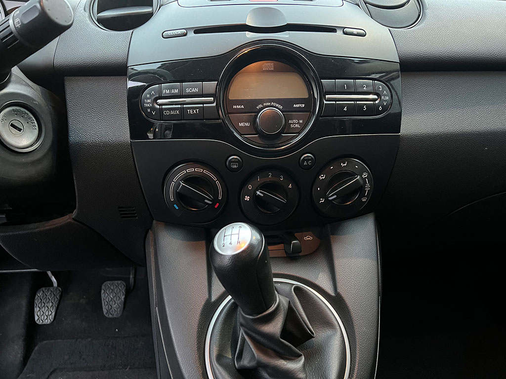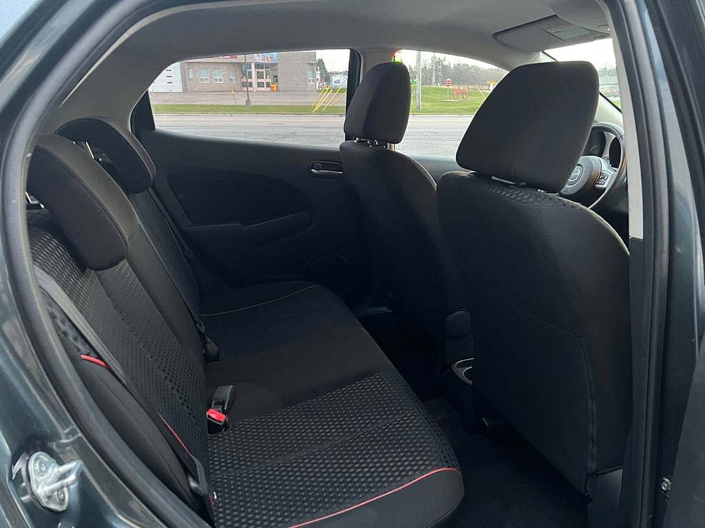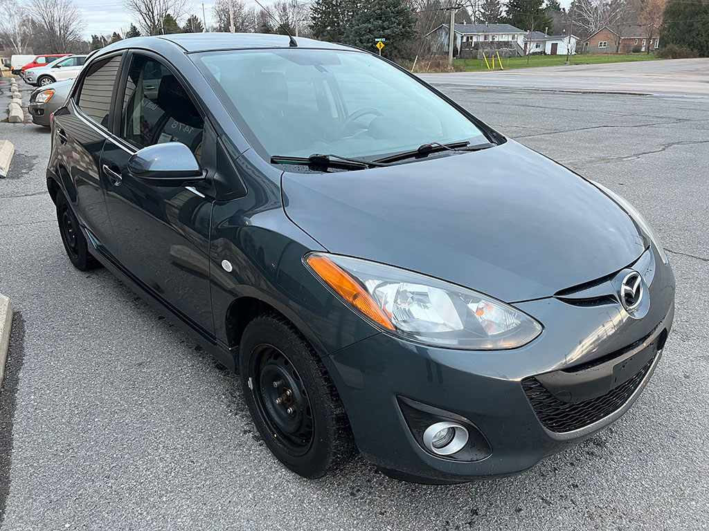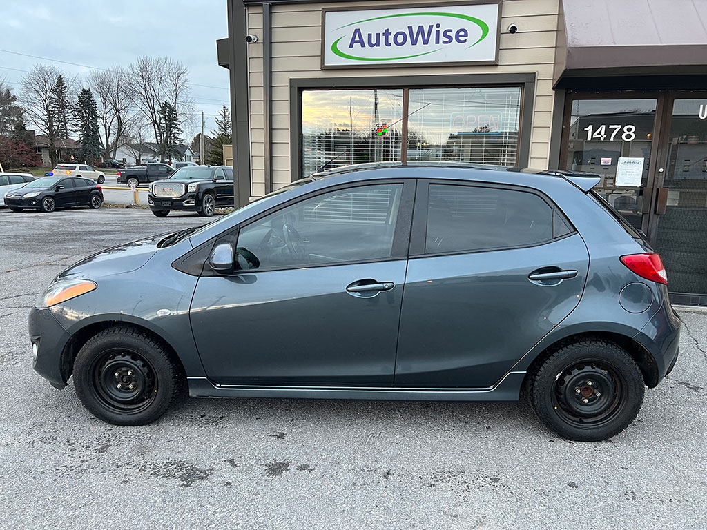 2011 Mazda Mazda2 with 1.5 litre engine, manual transmission, automatic headlights, air conditioning, tilt steering, cruise control, power windows, power locks, power mirrors, alloy wheels, steel wheels with winter tires, only 90,400 km and a clean CarFax!