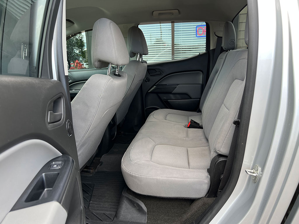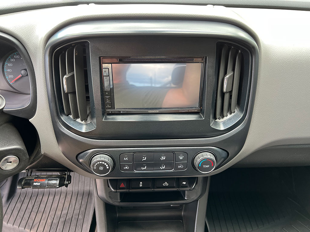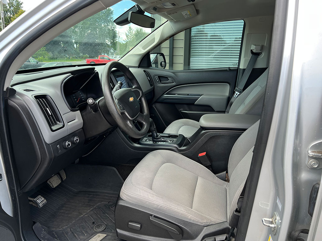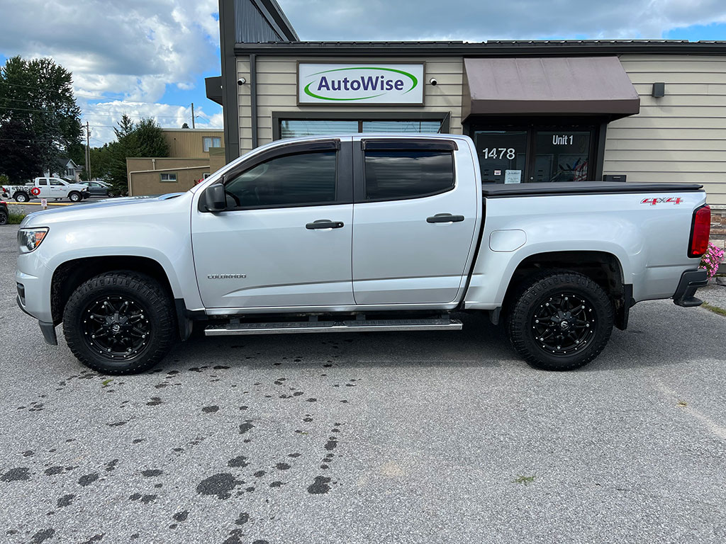 • 2015 Chevrolet Colorado WT 4×4 with 3.6 litre engine, automatic transmission, keyless entry, remote start, rear view camera, tilt steering, cruise control, automatic headlights, trailer brake controller, soft tonneau cover, Line-X spray-on bedliner, alloy wheels, 154,400 km and a clean CarFax!