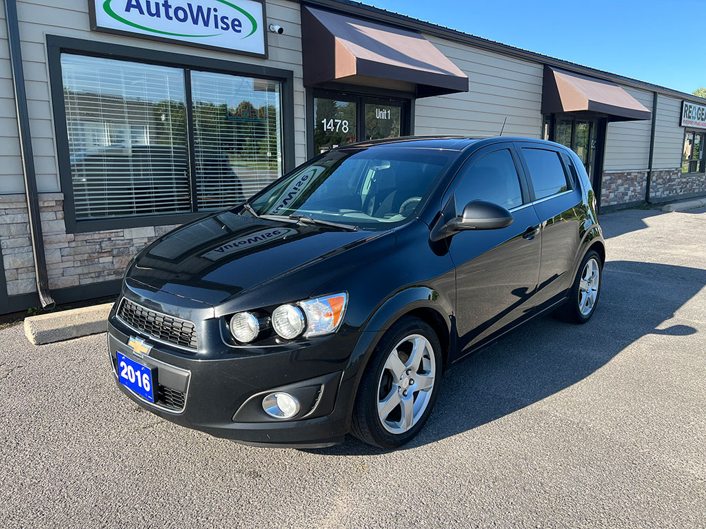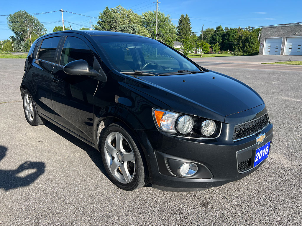 2016 Chevrolet Sonic LT with 1.4 litre engine, 6-speed manual transmission, keyless entry, heated seats, rear view camera, Bluetooth, moon-roof, automatic headlights, tilt steering, cruise control, power exterior mirrors, 106,400 km and a clean CarFax!